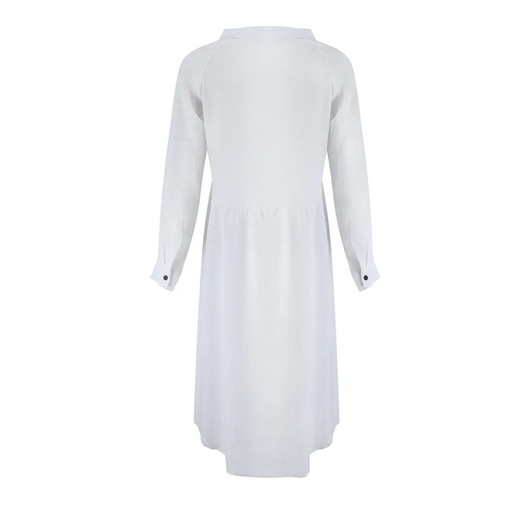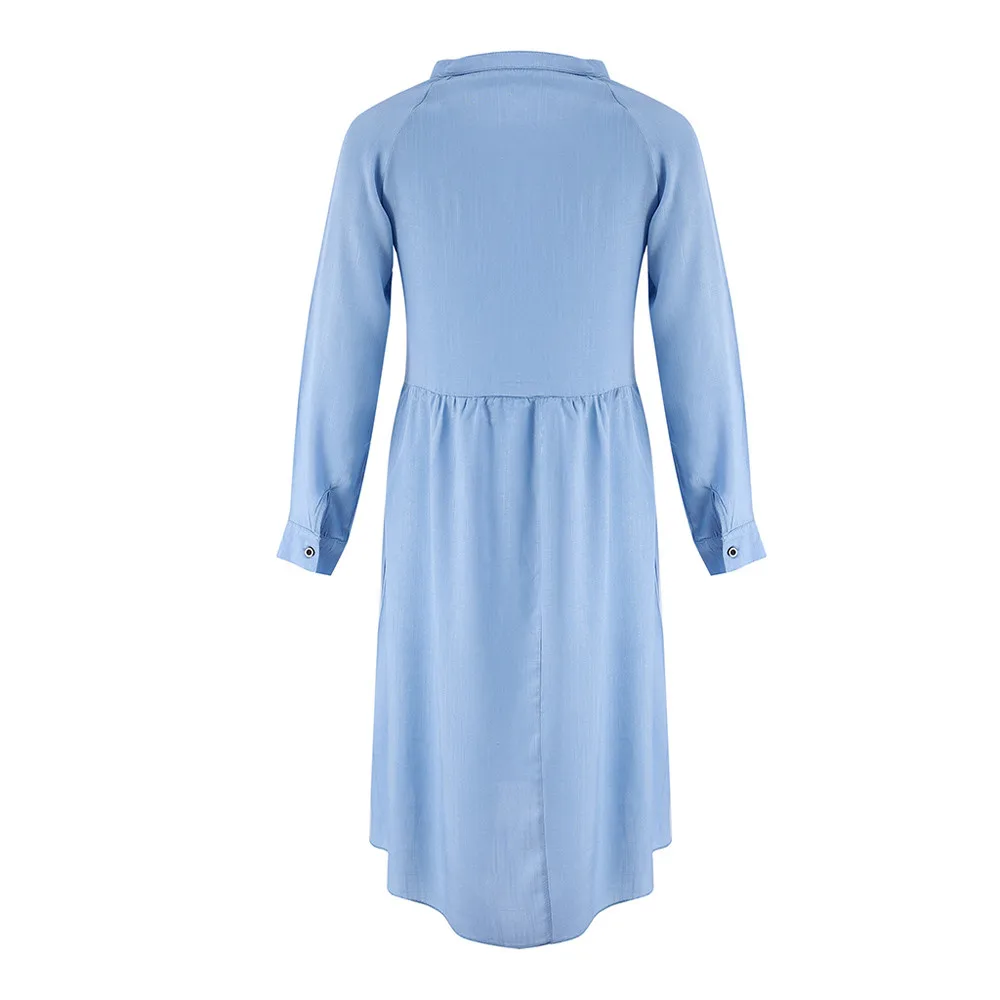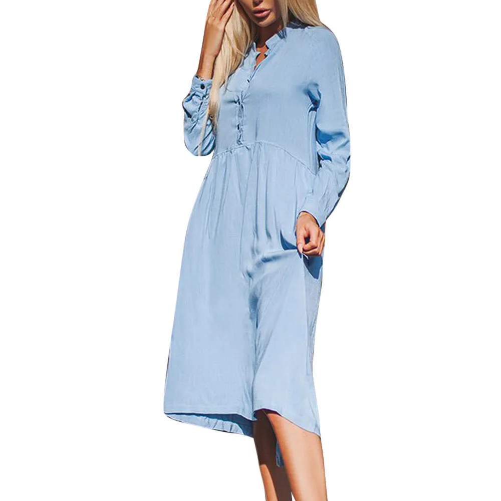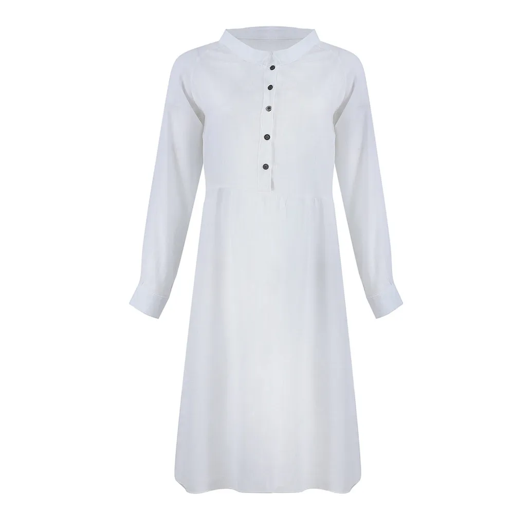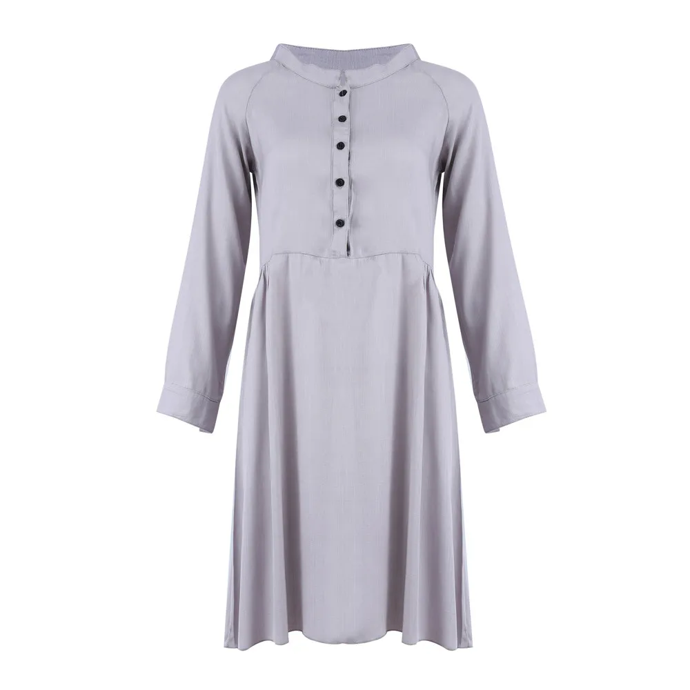 Fashion Women Botton England Solid Dresses Casual Elegant Sweet Long Sleeve Stand Collar Shirt Dress