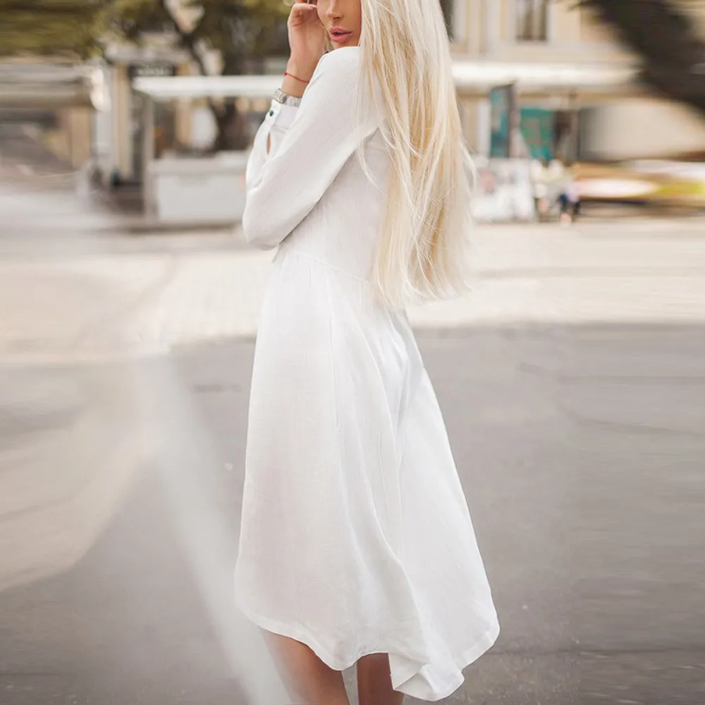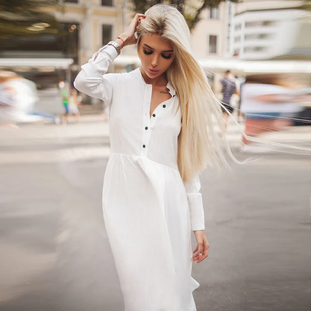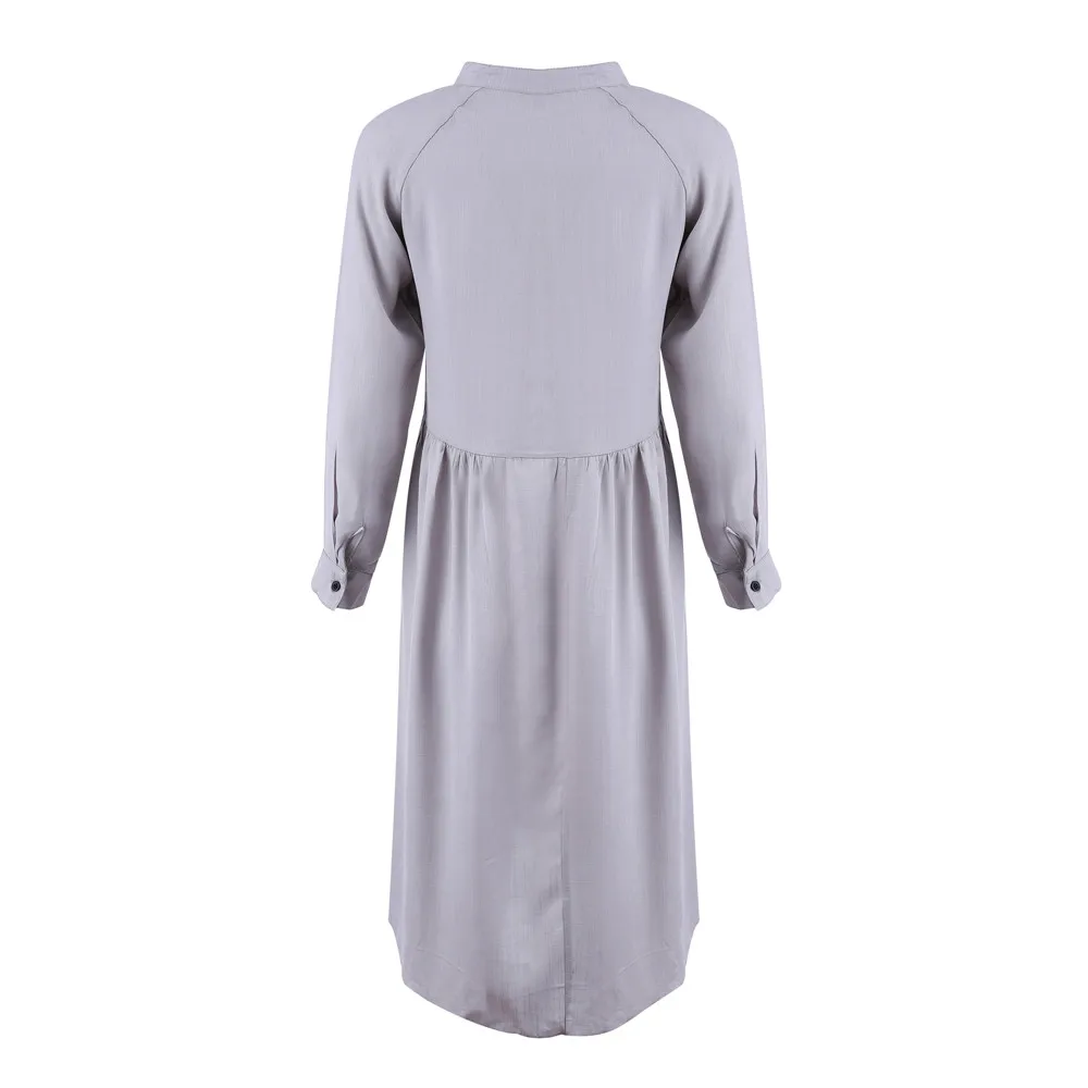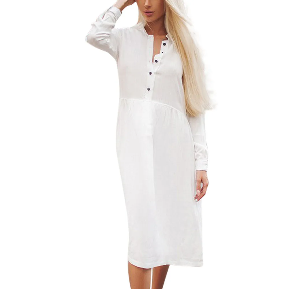 Fashion Women Botton England Solid Dresses Casual Elegant Sweet Long Sleeve Stand Collar Shirt Dress