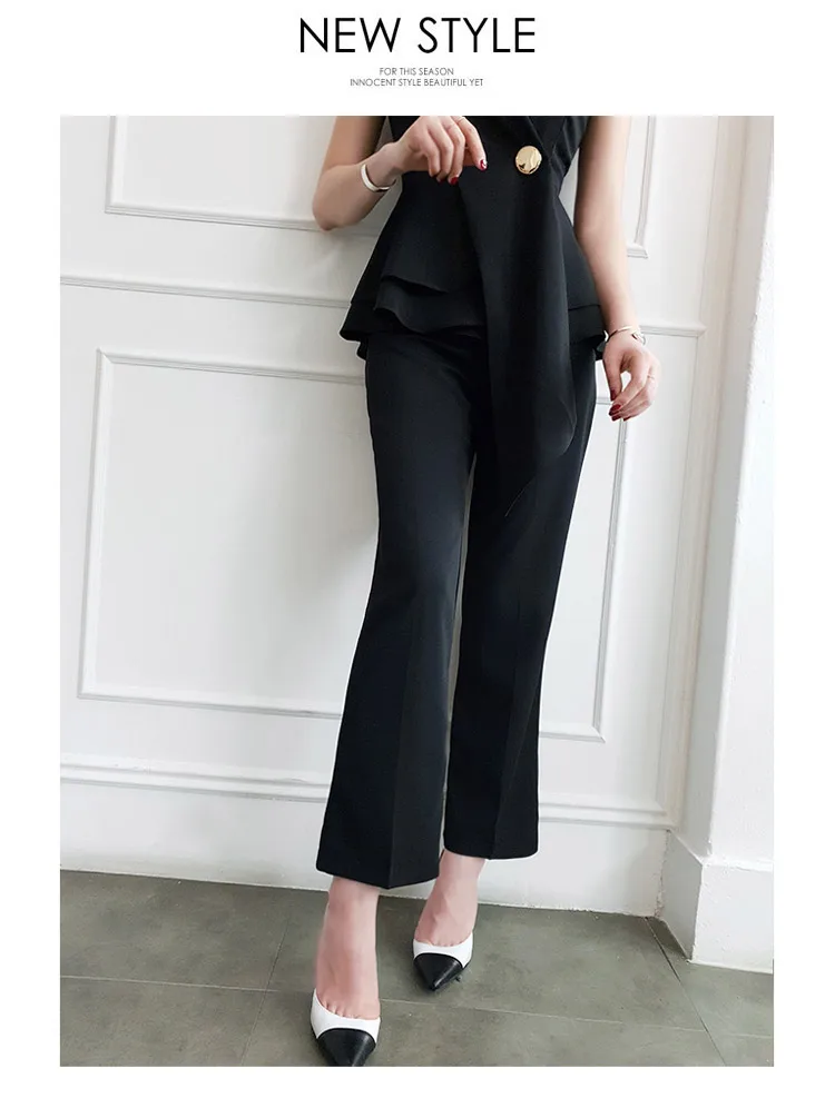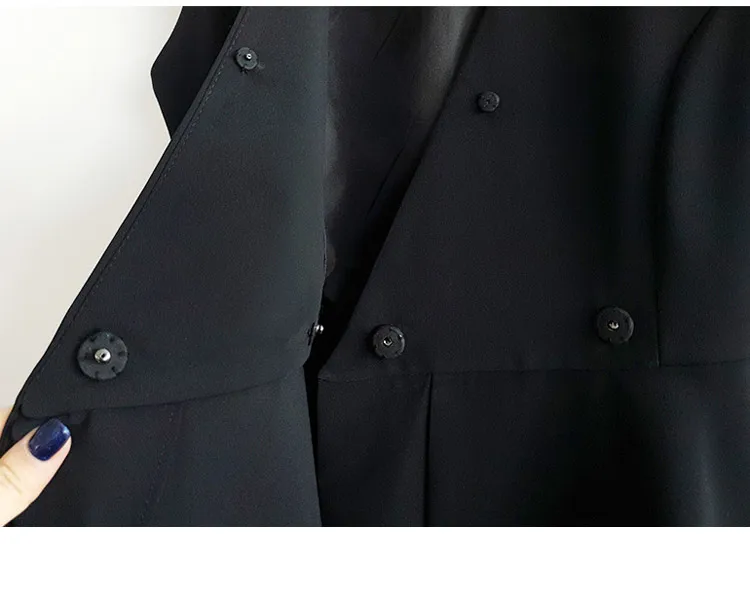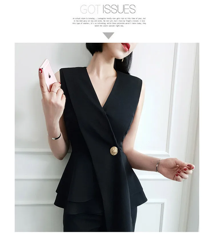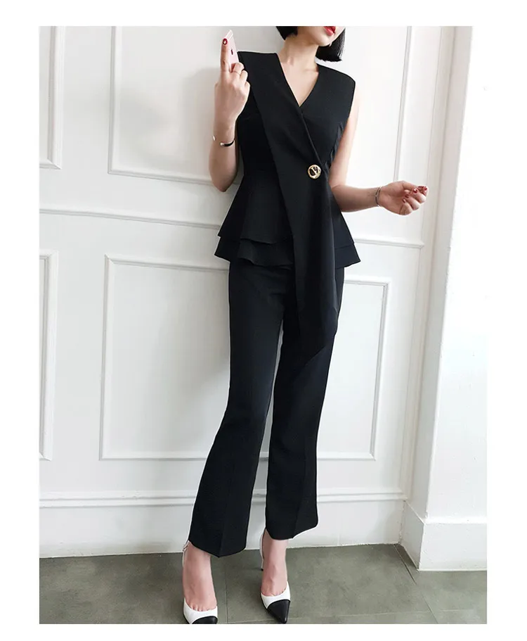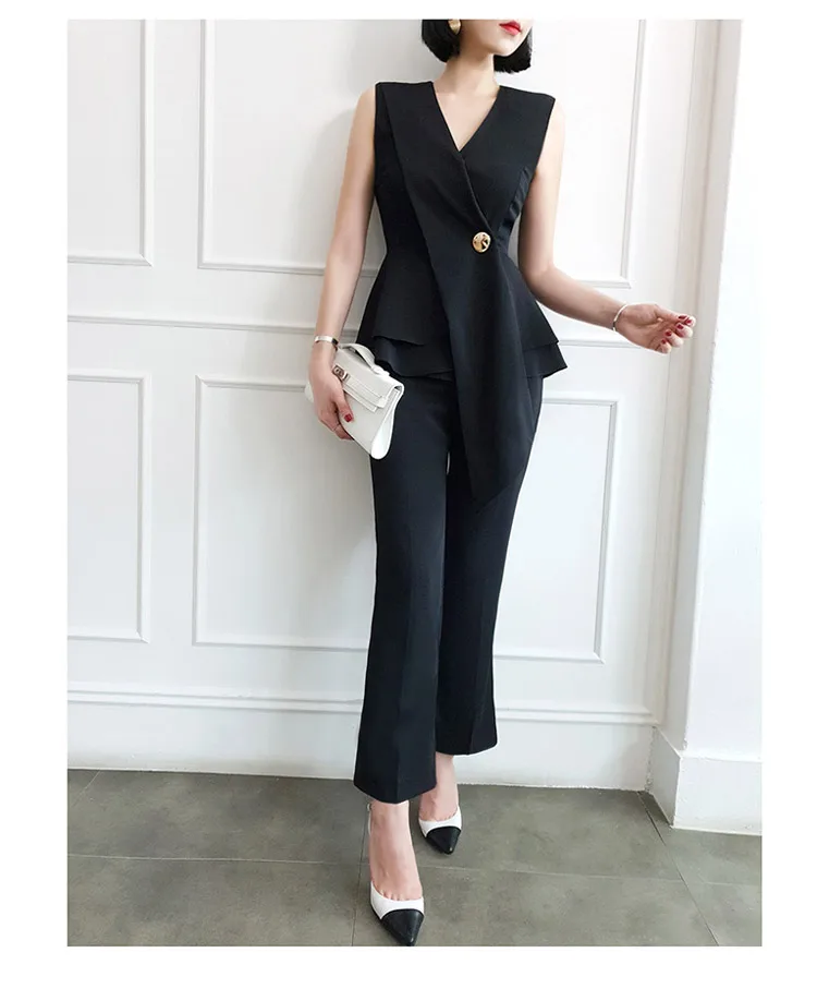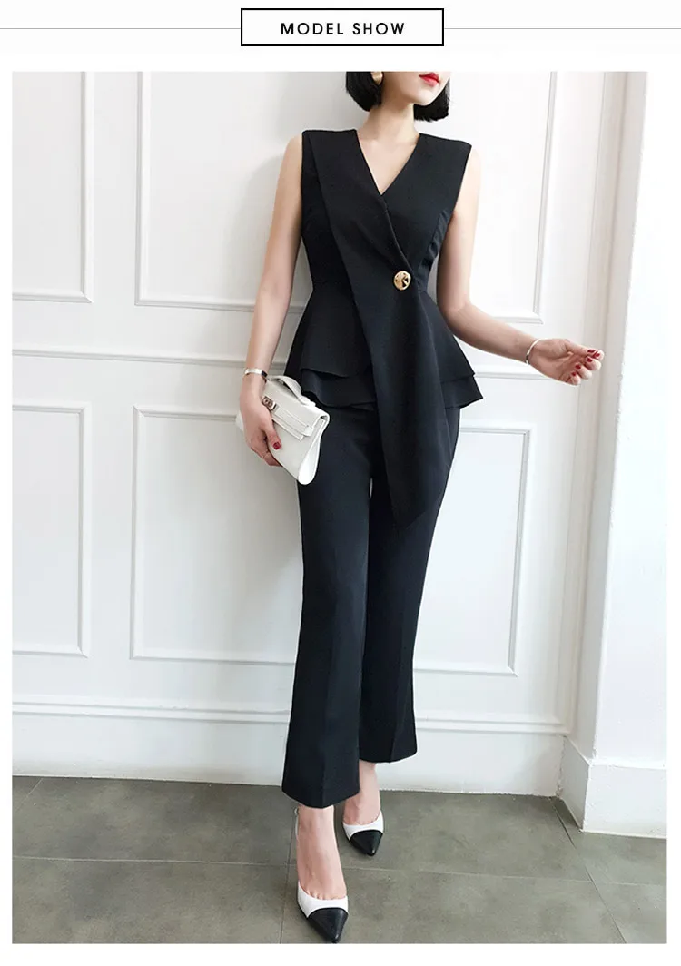 Ladies Summer Green Black Two Pieces Sets Women 2019 New Korean Fashion V-neck Ruffled Shirt