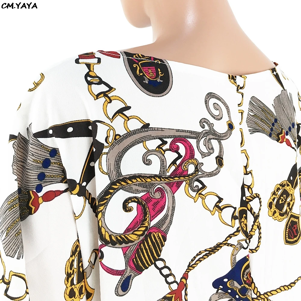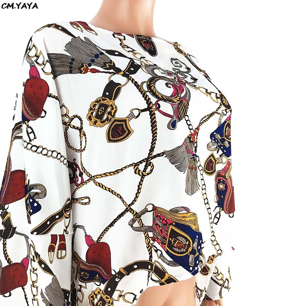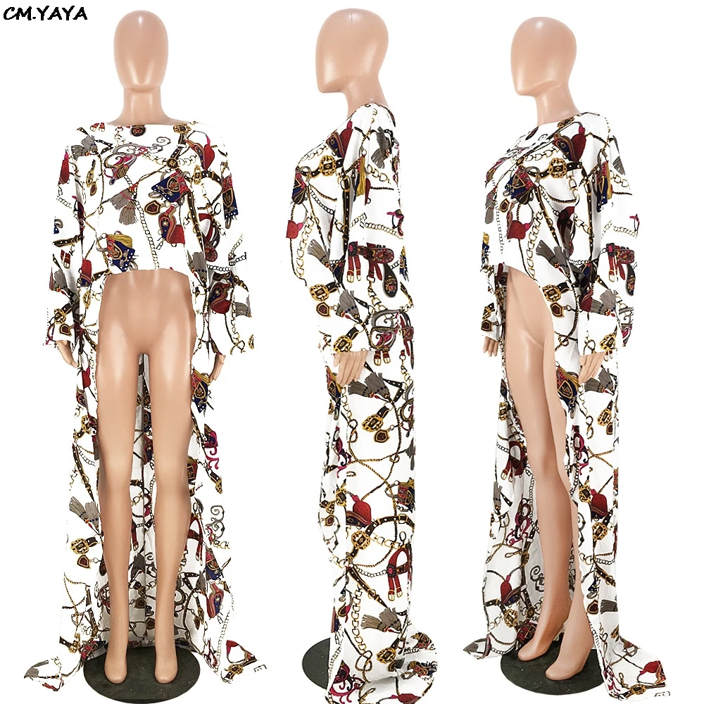 women vintage chain print o-neck long sleeve cocktail irregular high low floor length blouse shirt dress