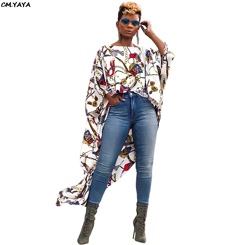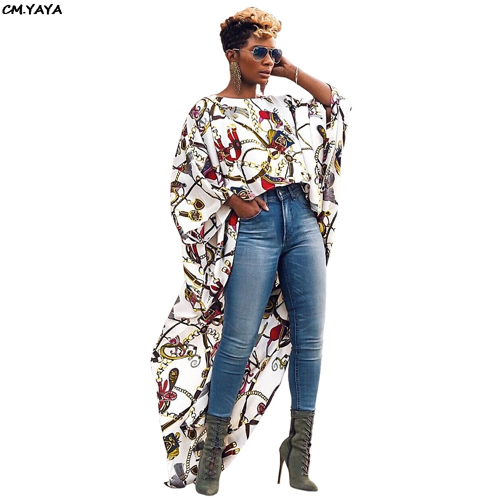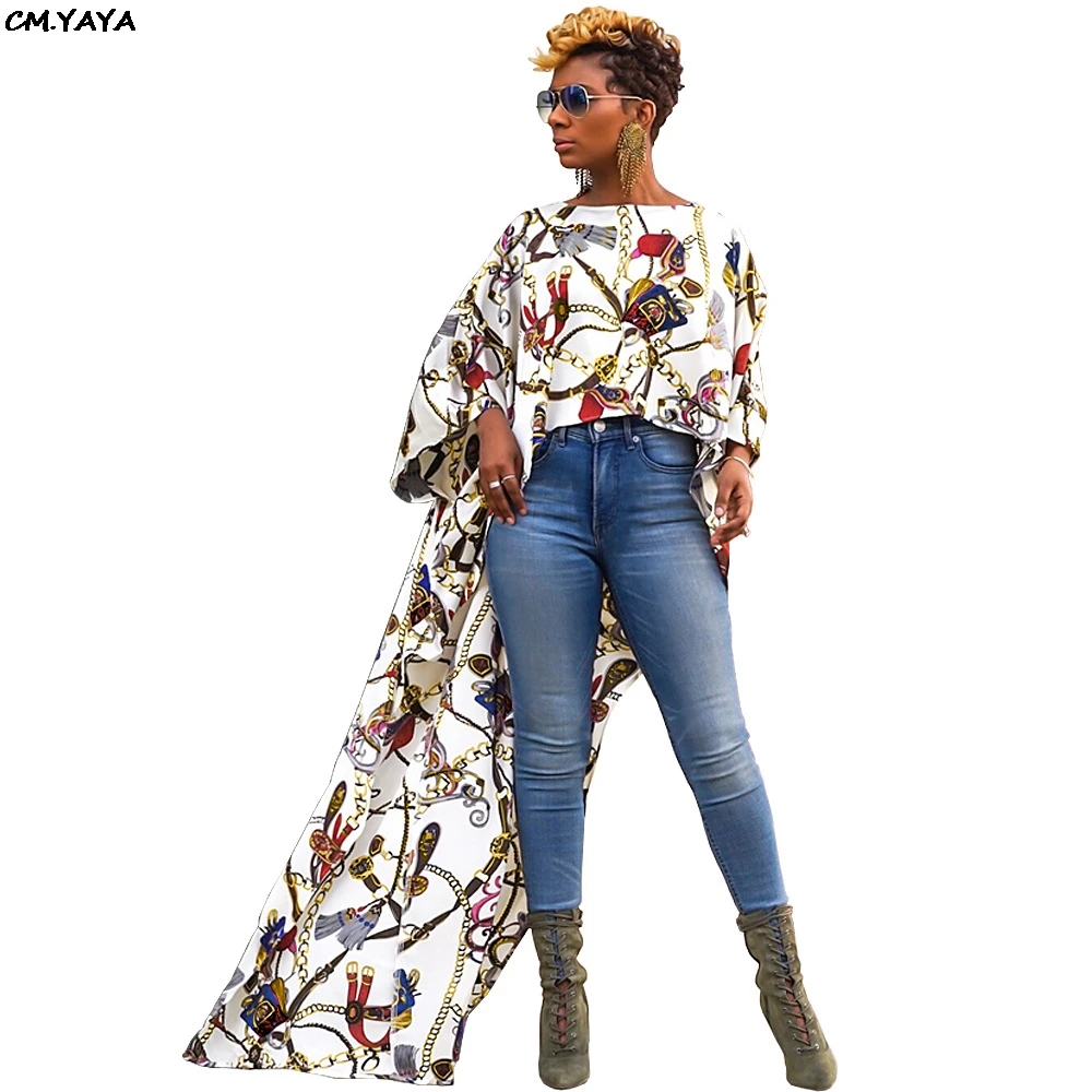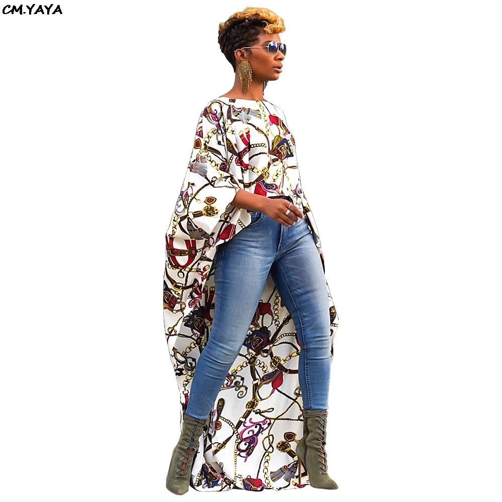 women vintage chain print o-neck long sleeve cocktail irregular high low floor length blouse shirt dress